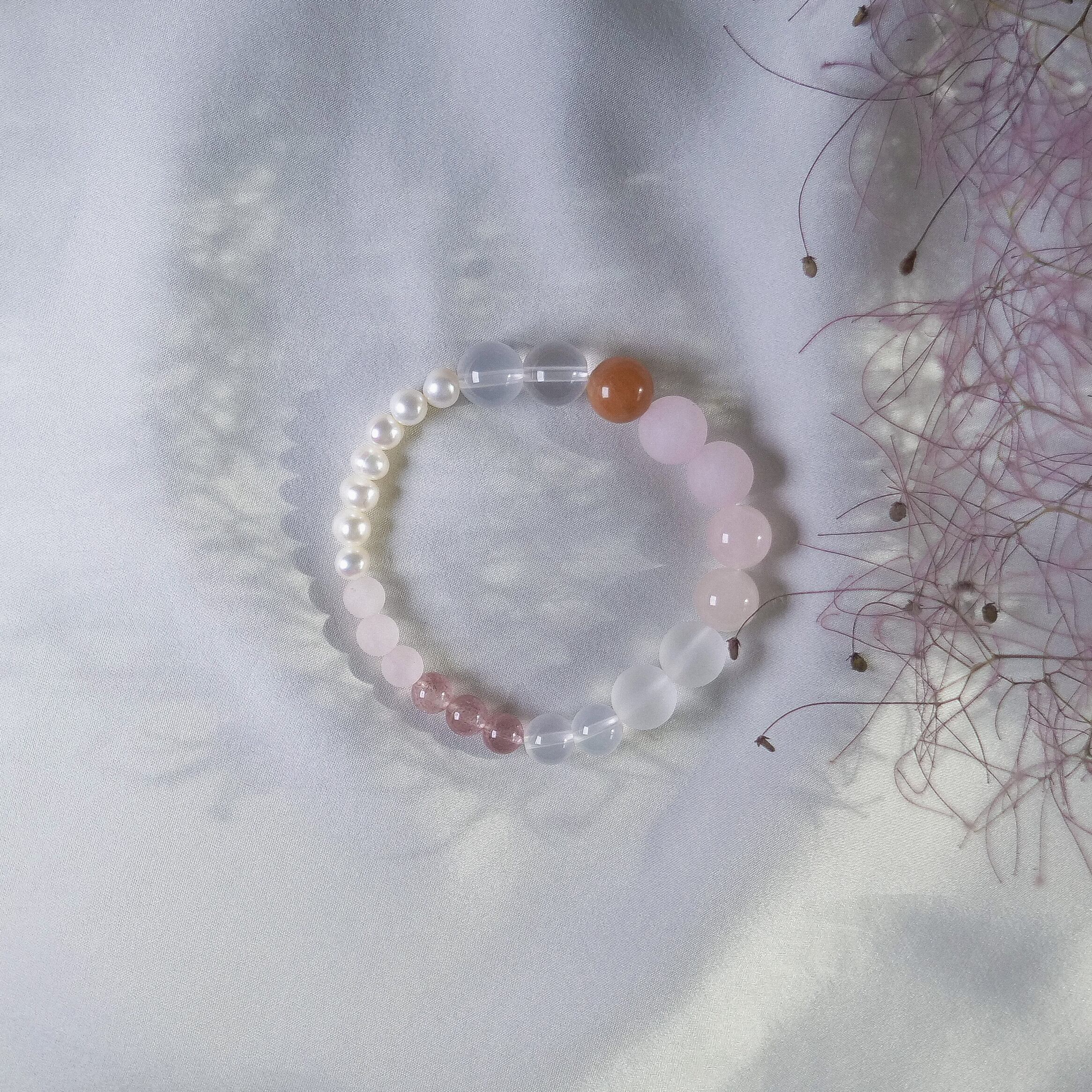 【再入荷】[No.31] ローズクォーツ × ミルキークォーツ × ストロベリークォーツ × アベンチュリン × 淡水パール[ブレスレット]