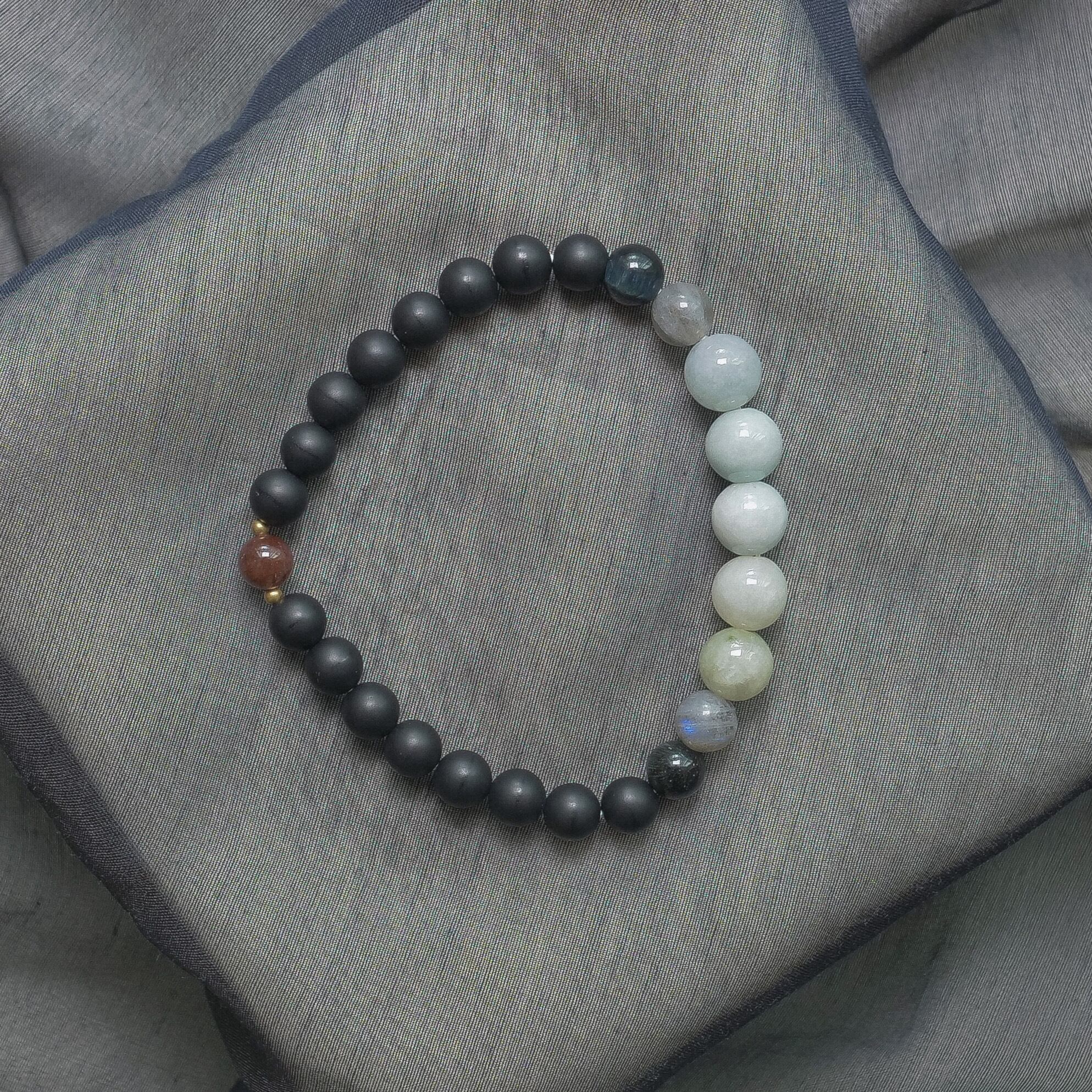 [No.26]翡翠 × オニキス × ラプラドライト × ホークスアイ [ブレスレット]