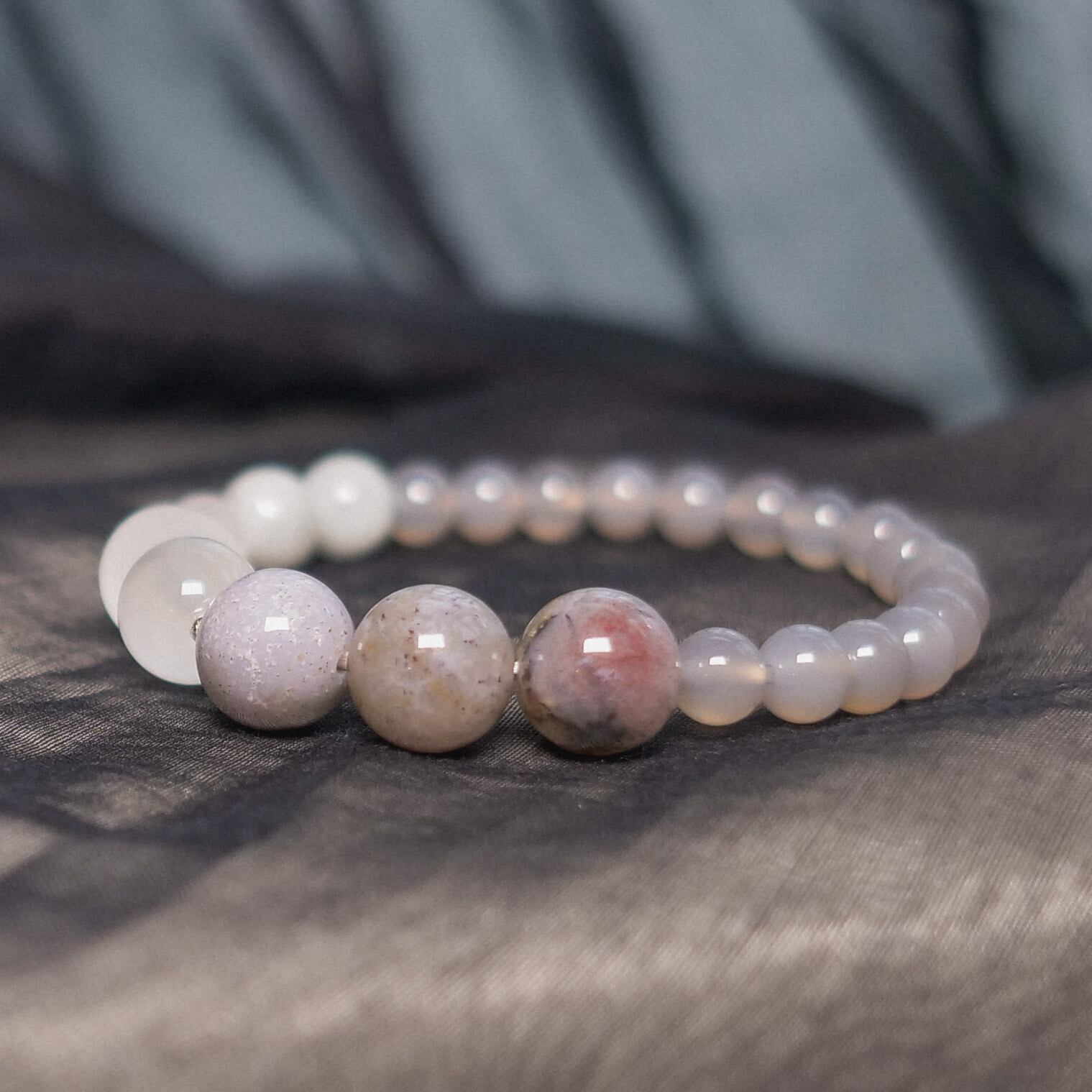 [No.27]カルセドニー × 翡翠 × ミルキークォーツ × クリスタル × インディアンアゲート [ブレスレット]