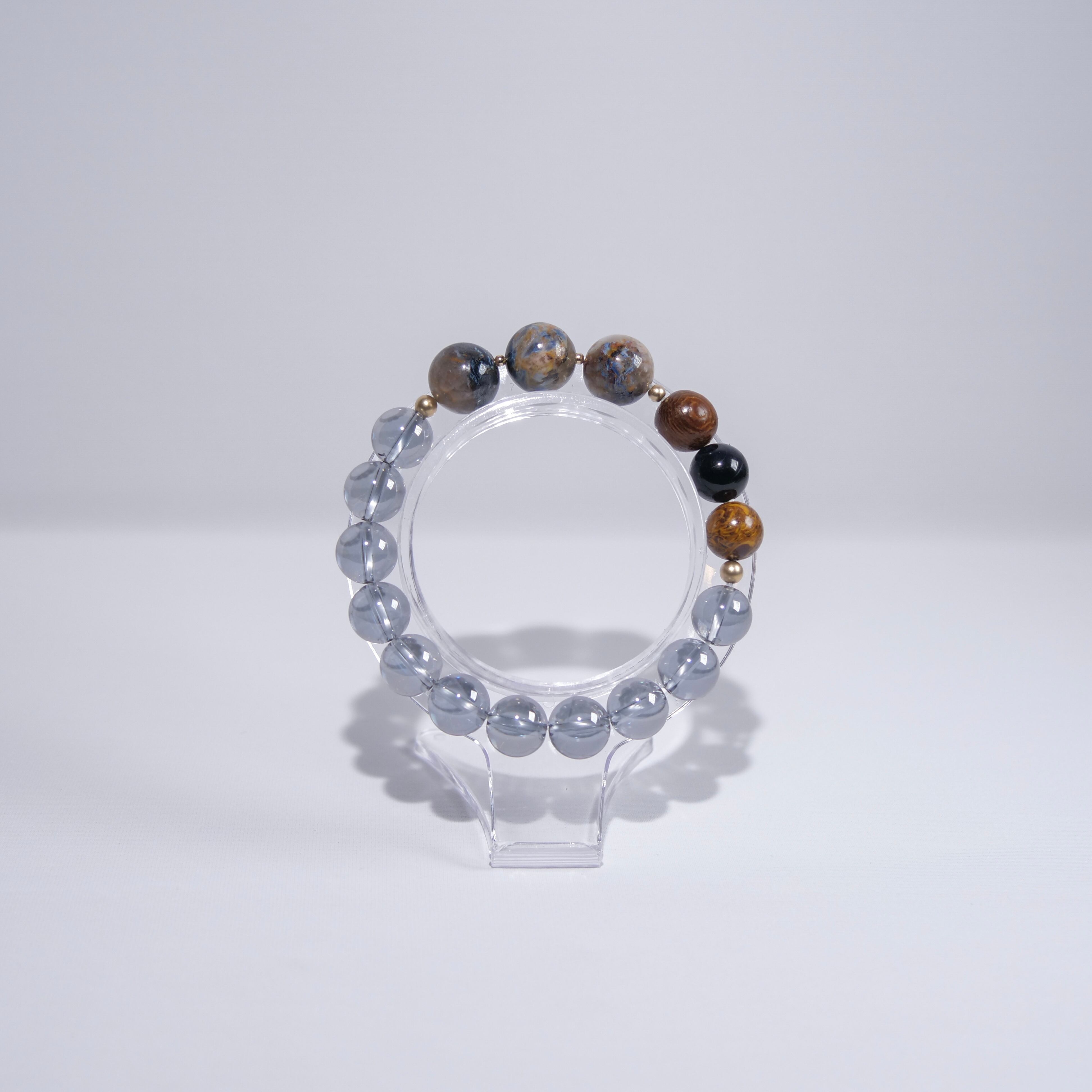 [No.71]ピーターサイトシリカ × ホークスアイ × クリスタル × エレファントスキンジャスパー[ブレスレット]