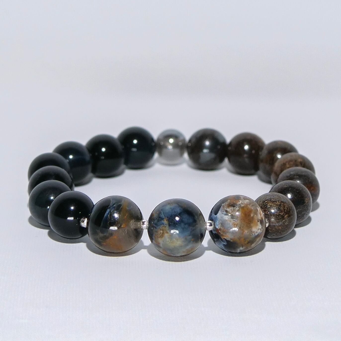 【再入荷】[No.72]ピーターサイトシリカ × ホークスアイ × ブロンザイト × クリスタル[ブレスレット]